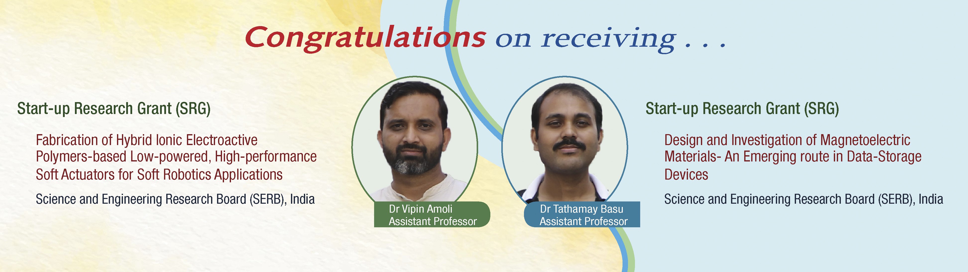 • Start-up Research Grants awarded to Dr. Vipin Amoli and Dr. Tathamay Basu by SERB, India. view