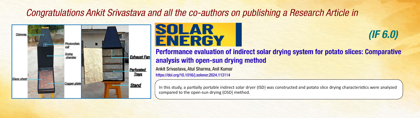 • Congratulations to Ankit Srivastava and all co-authors on publishing a research article in Solar Energy (Impact Factor: 6.0). view
