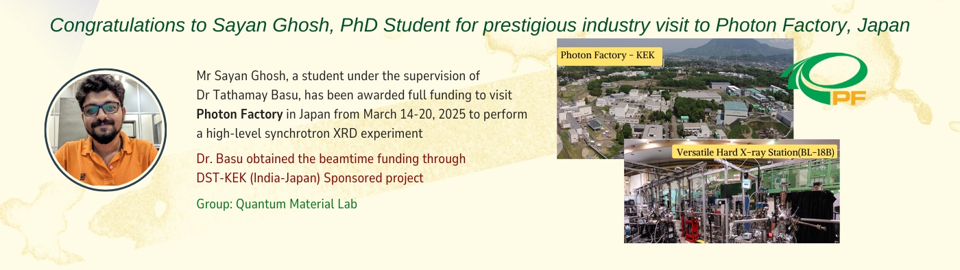 • Congratulations to Sayan Ghosh, PhD student, for a prestigious industry visit to Photon Factory, Japan. view