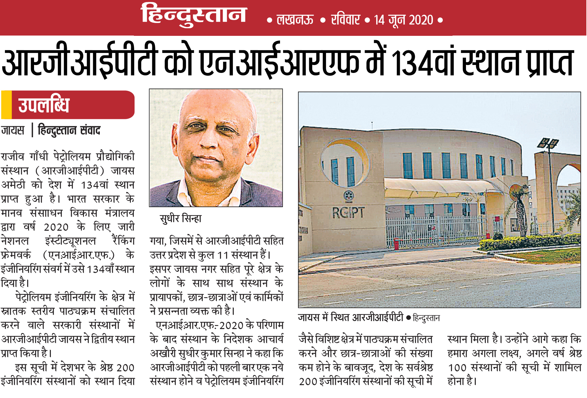 RGIPT is in 134th Position among Engineering colleges by NIRF ranking 2020