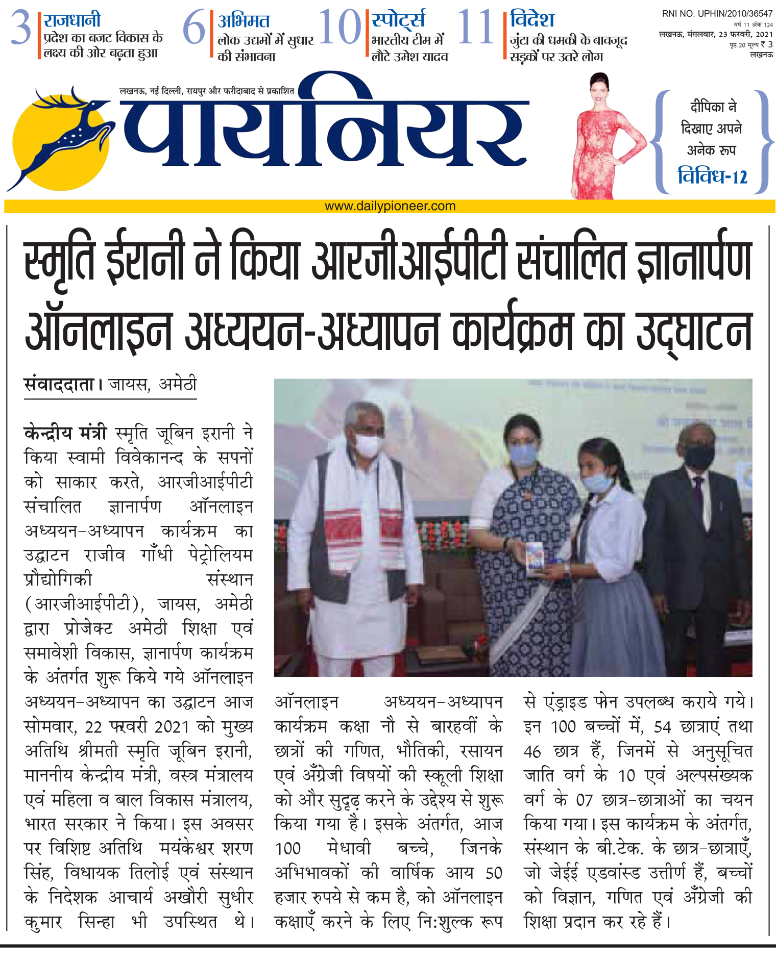 Coverage of RGIPT's field work in Dainik Bhaskar Newspaper