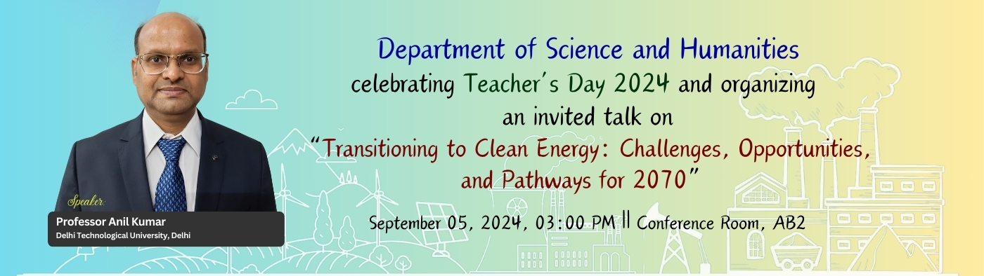 Department of Energy Sciences and Humanities celebrating Teacher's Day 2024 and organizing an invited talk on "Transitioning to Clean Energy: Challenges, Opportunities, and Pathways for 2070", September 05, 2024;
