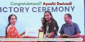 - Congratulations!! Ayushi Dwivedi on winning First Prize in the Students Poster Presentation Competition at SRC-2025 hosted by ICT IOC Bhubaneswar view
