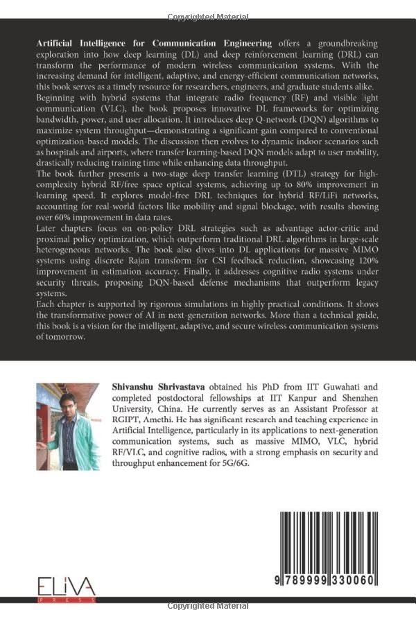 Tanya Verma, Shivanshu Shrivastava*, Umakant Dhar Dwivedi, D.P. Kothari, “Transfer Learning for Resource Allotment in Dynamic Hybrid WiFi/FSO Communication Systems,” Optics Communications, Vol. 546, 2023. (IF: 3.2)