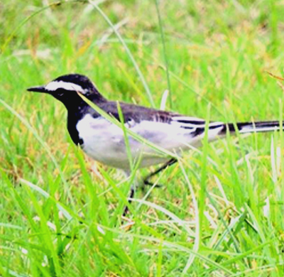 The white-browed wagtail or large pied wagtail is a medium-sized bird and is the largest member of the wagtail family. They are conspicuously patterned with black above and white below, a prominent white brow, shoulder stripe and outer tail feathers. This most familiar bird is found throughout the RGIPT campus, walking swiftly on the ground. In older times in India, the species was sometimes kept as a cage-bird and was acclaimed for its singing ability. The native name of khanjan is used in the phrase "khanjan-eyed" to describe someone with beautiful eyes. Like other wagtails, this species is insectivorous.